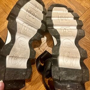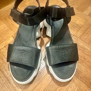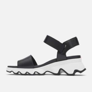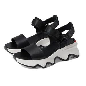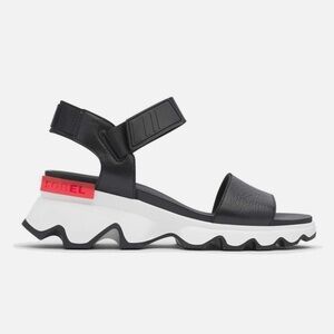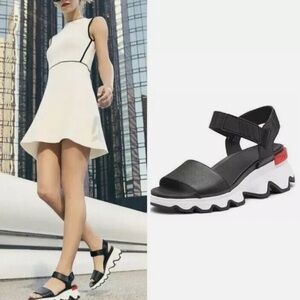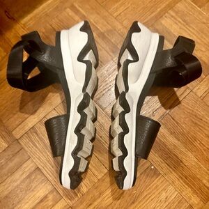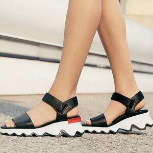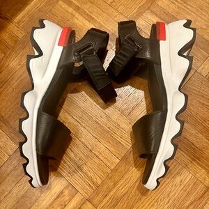 SOREL Black KINETIC Leather Rubber Wavy Platform Sandals