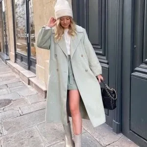 NEW Zara oversized wool blend coat baby green