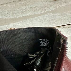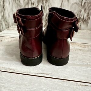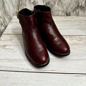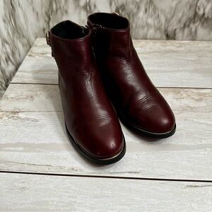 Zara Girls Sz 34 US Sz 2.5 3 Red Wine Leather Bootie Shoes Side Zip Gold Accents