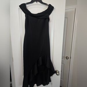 Venus brand black midi dress with ruffle detail perfect for special occasions. Size medium.