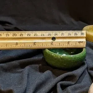 The pot is 5⅝" from handle to spout and stands approximately 3¼" tall. The cups are 1⅛" tall by 2½" wide.