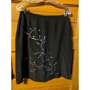 Mixit Woman Embroidered Floral Black Skirt Size 10 Blue Purple Lined
