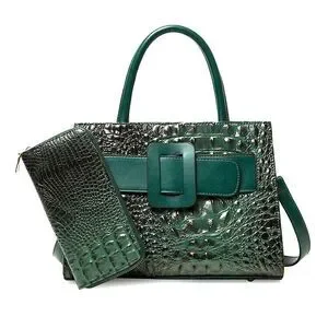 Women's Green Crocodile Pattern Belt Accent With Wallet Satchel Handbag