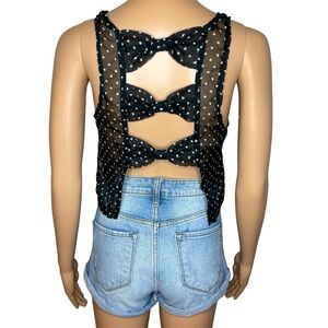 Brandy Melville Black & White Polka Dot Sheer Sleeveless Open Back Crop Tank Top