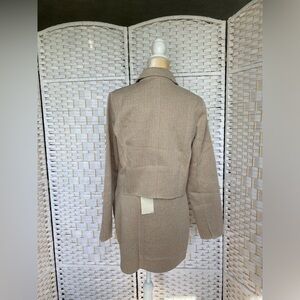 NWT Hem & Thread Chevron Jacquard Texture Crop Blazer flattering 1 button closure. Cream and Tan in color. This jacket has the matching skirt in another listing. Very flattering.