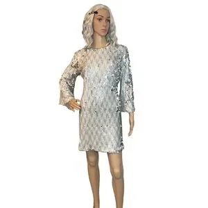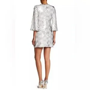 Dress The Population NWOT Statement Silver Sequined Bell Sleeve Mini (0477)