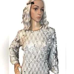 • Amazing Show Stopper Eye Popping Silver Sequined Bell 3/4 Sleeve Crew Neck Mini Dress