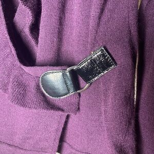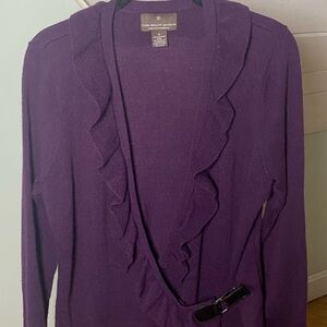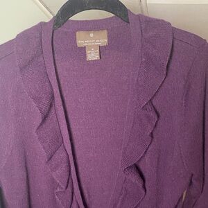 Fenn Wright Manson 100% Merino Wool Cardigan Ruffles Belt Eggplant Purple