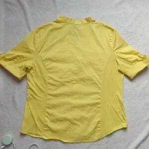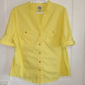 5 for $10 Anne Klein Yellow 1/4 Rollup Sleeve Button Down VNeck Top size XL