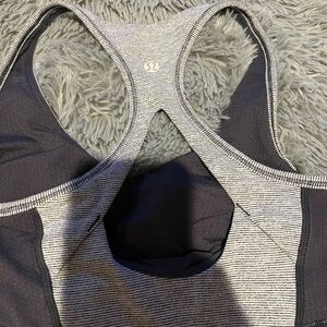 Very attractive sports bra with built-in shelving bra, and outside stitching for style in excellent condition and smoke-free home. Racerback tank style