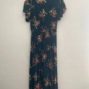 Xhilaration | Teal Floral Maxi Dress Flutter Sleeves Faux Wrap