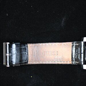 Guess men's chronograph with new battery keeping good time. Some wear on the case, mostly on the case back. Extremely light scratches on the crystal. Leather band and a 44mm case. Let me know any questions you might have.
