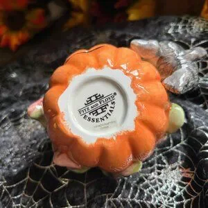 Retired series Fitz and Floyd “Halloween Kitty” collection votive candle holder: Kitten and Pumpkin “Filled Candlecup” (Item ID Code: 2063/140)