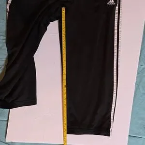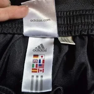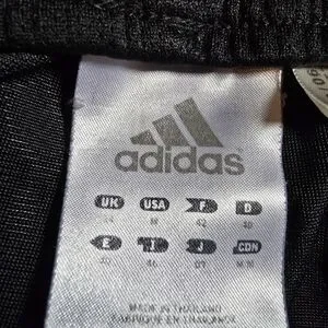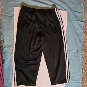 It is a great find for people who love Adidas. These are womens size M with a strawstring waist. Black with the 3 white stripes going down the legs.