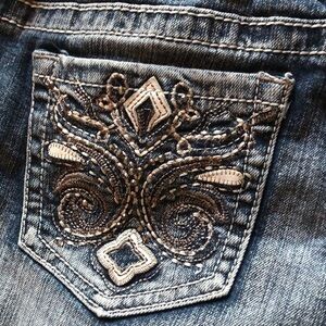 Missing a few jewels on the back pockets but really can’t tell because of the design stitching