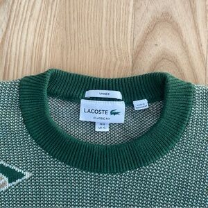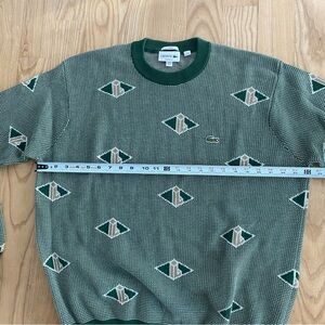 Lacoste Monogram Jacquard Logo Crewneck Sweater Green Paris Preppy Heritage XL