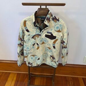 Patagonia Synchilla Owl Beige Size Medium 1/4 snap pullover