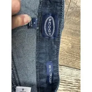 Crafted from 99% cotton and 1% spandex denim fabric, these jeans are machine washable and perfect for all seasons. The dark wash and solid pattern make them a versatile addition to your wardrobe. Available in size 4, these Scoop Retro Trousers are a must-have for any fashion-forward woman.