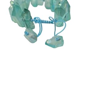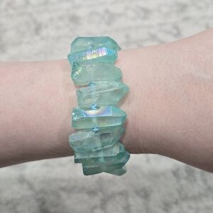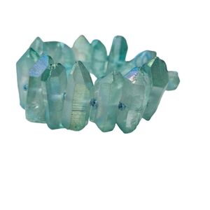 The crystals have a titanium aura coloring. Size is adjustable to fit any wrist.