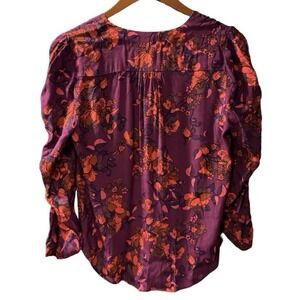 ANTHROPOLOGIE Maeve floral button up blouse S Small wine jourdain runa