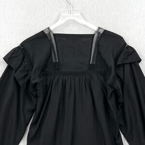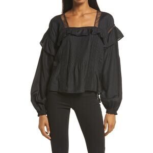 ALLSAINTS Juliette Pintuck Ruffle Top Womens 00 Black Square Neck Balloon Sleeve