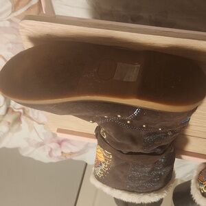SUPER CUTE ED HARDY WINTER BOOTS IN RICH DARK BROWN SUEDE LINED WITH FAUX FUR