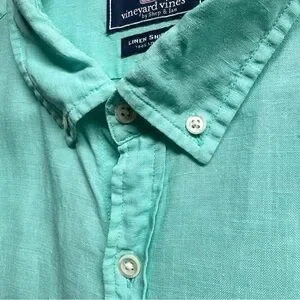 Vineyard Vines 100% Linen Shirt Mens Size XL Button Down Teal Green Front Pocket