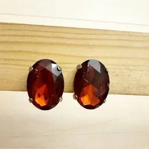 Stunning Vintage Large Root Beer Brown Rhinestones ClipOn Earrings Made in China