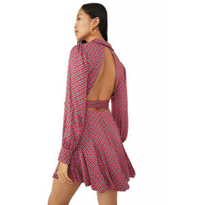 Free People It Takes Two Pop Combo Tie Waist Open Back Printed Dress Size M