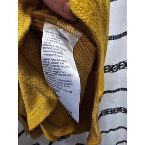 Saturday Sunday Anthropologie mustard yellow ribbed and smooth sweater size medium. Long sleeves with drawstring detail. Super soft, boat neck, curve hem.