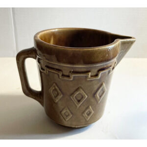 Monmouth Western Stoneware Milk or Batter Pitcher Diamond Pattern EUC Vintage