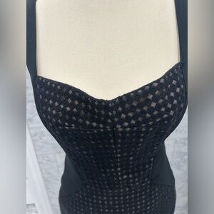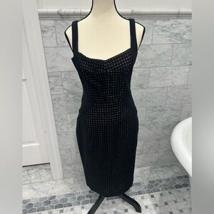 Size 4 Maggy London LBD with sweetheart neckline and diamond pattern. Extremely flattering hour glass shape and nude lining to create the facade of a cutout pattern.