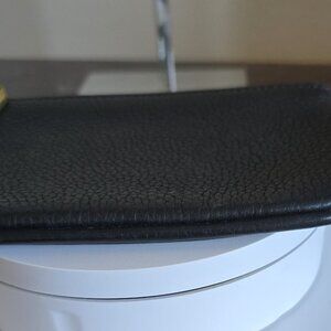 This vintage Coach Sonoma cosmetic pouch is a rare find for any collector. Made from black leather with gold hardware, it is a beautiful addition to any bag collection. The pouch is small in size and features a zip closure, making it perfect for storing cosmetics or other small items. The brand name Coach is synonymous with quality and luxury, and this pouch is no exception. It is a must-have for any women's bag collection.