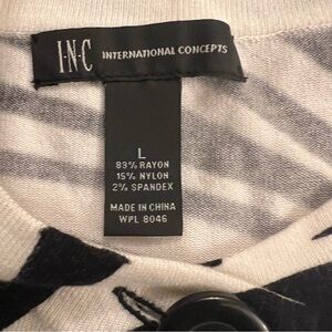 INC Zebra Print Cardigan 3/4 Sleeve Rayon Sweater. Single Button Closure Large.