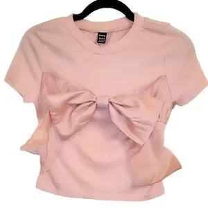 Shein Ribbed Crop Tee with Oversized Bow, medium/6, NWT