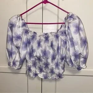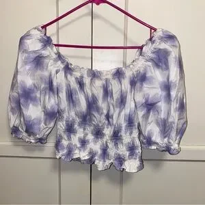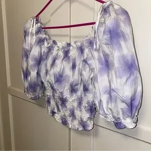 Levi's Large Tilly Printed Smocked Puff Sleeve Ruffle Trim Peasant Top