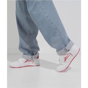 The Telford low top skate shoes from Lakai come with white leather uppers and red detailing throughout for an eye-catching design. These cool sneakers use a cupsole construction for durability, complete with the Lakai hexagonal tread pattern on the sole for grip and internal tongue gussets for a snug fit even without laces.