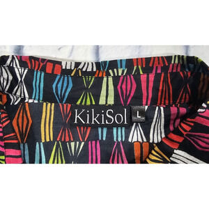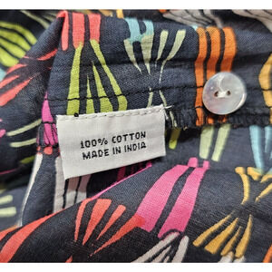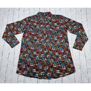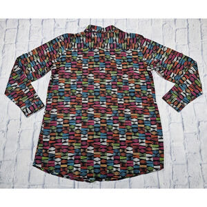 KikiSol WOMENS SIZE L Multicolor Art Boho Tunic Boyfriend Shirt Button Sheer