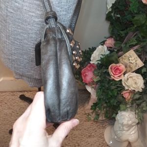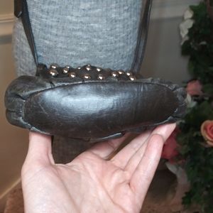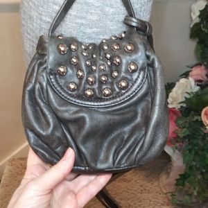 Badgley Mischka Charcoal Leather Boho/Rocker Chic Silver Studded Crossbody Purse