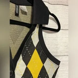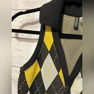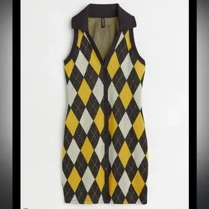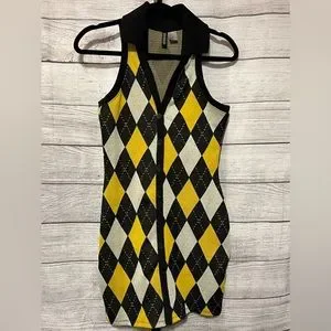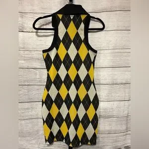 Amazing black white and yellow sleeveless collared argyle dress in a size small. Pre loved and in excellent condition