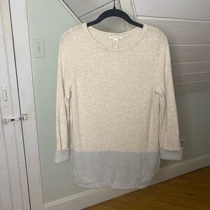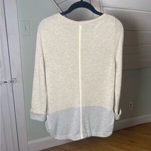 White + Warren Powder Blue and Cream 100% Cashmere Pullover Sweater Size S