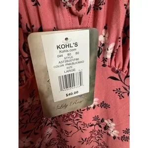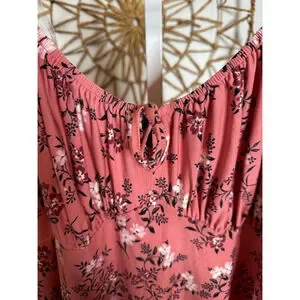A floral pink dress with a square neck and long sleeves. The dress is new with tags and has never been worn. It is a size large and weighs 0.734 pounds.