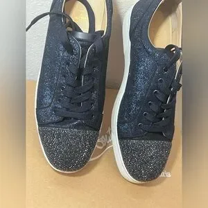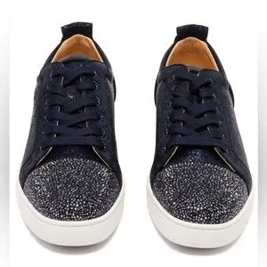 ❌SOLD❌ Christian Louboutin Navy Louis Junior Crystals Low-Top Sneakers SZ 47EU