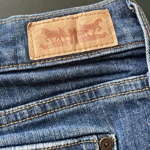 These jeans feature classic Levi’s styling, including the red Levi’s tag on the back pocket. They have buttons on the back pocket. There are no holes or tears in the jeans. As far as distressing, there is just some whiskering on the front legs. Please comment below with any questions. Comes from a smoke-free home with no pets.