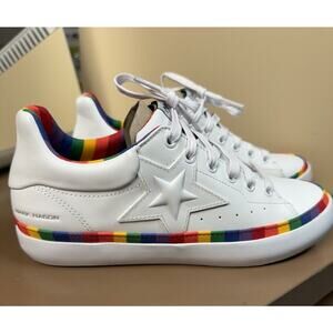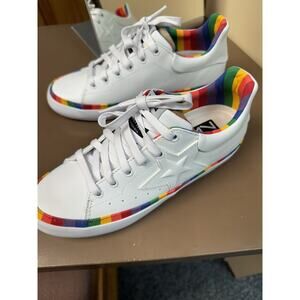 Mark Nason Sneakers Womens 7.5 White Shoes Rainbow Trim Pride Colorful Unworn