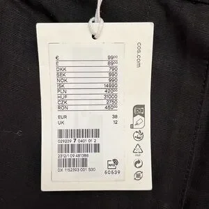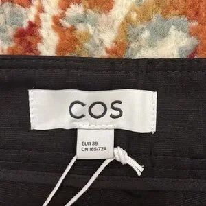 NWT, Size EU 38, black The COS womenswear team take a refined view of utility this season. These cargo trousers are crafted from an organic cotton blend and cut in a high-waist, wide-leg shape. Oversized welt and flap pockets reiterate the modern approach to design, while the back darts lend subtle definition.