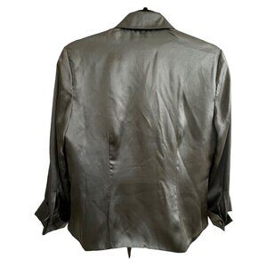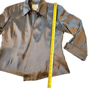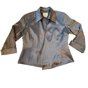 Vtg ICE Womens Gray Silk Satin Jacket Open Front Lined Sz Medium