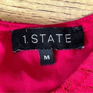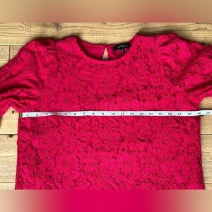 Puff Short Sleeve Keyhole Top from 1. State. Women’s size Medium. Bright pink color. The all over lace finish of this puff sleeve blouse adds a delicate and beautiful touch. Lined. Keyhole back. Crew neck. Approximately 19” pit to pit; 21” long. Good used condition.