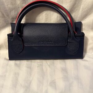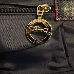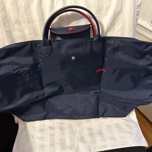 Longchamp Navy and red extra large tote. Measures approximately 23 x 13 and 5" shoulder strap length ( measurements are approximate). NWOT and great for travel. One inside pocket.