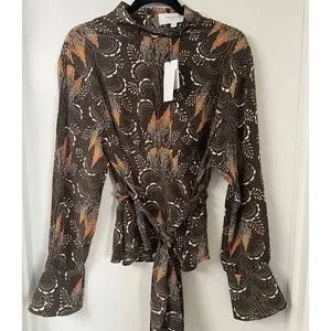 EQUIPMENT Brown Long Sleeve Tie Waist Silk Top Size 12